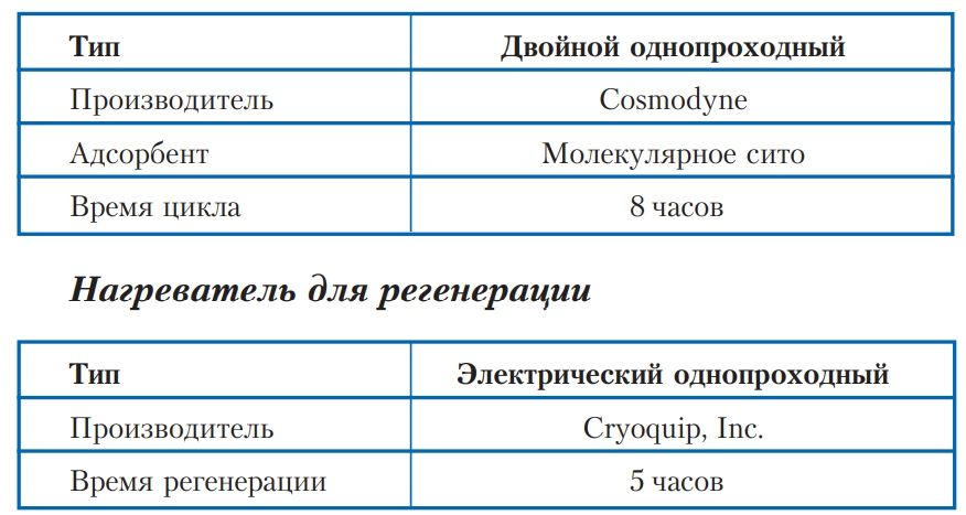 - Адсорберы автоматически переключаются с рабочего режима на регенерацию каждые восемь (8) часов.