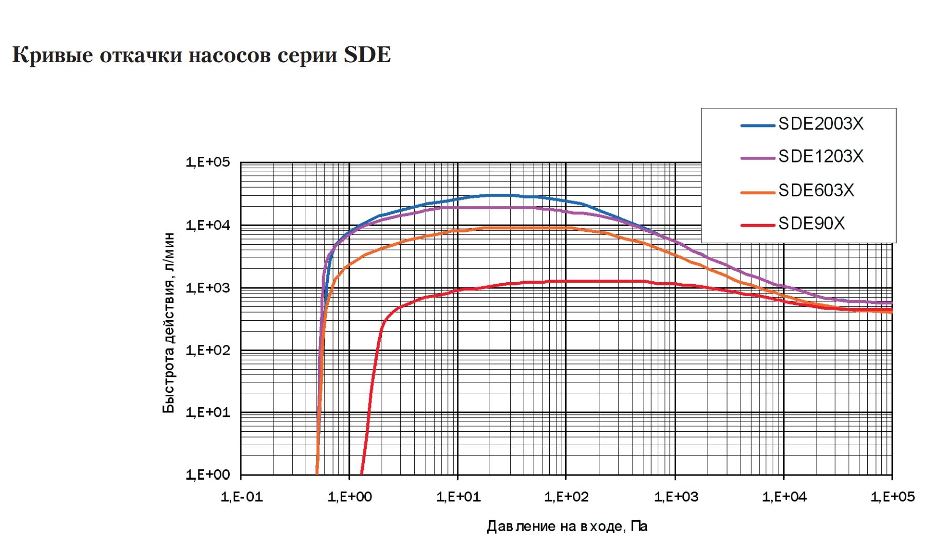 Насосы серии SDE производительностью от 1300 до 30000 л/мин используются в тех приложениях, где необходима откачка коррозионных газов. Насосы этой серии основаны на комбинации вертикального винтового и многоступенчатого насоса Рутса. Винтовой компрессор имеет два винтовых ротора. Один ротор имеет правую резьбу, а другой — левую. Оба ротора вращаются внутри корпуса без трения с минимальным прецизионным зазором, не требующим смазки.