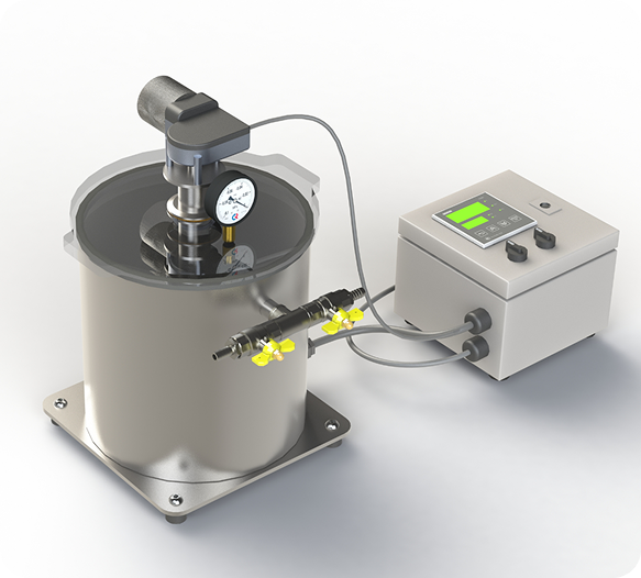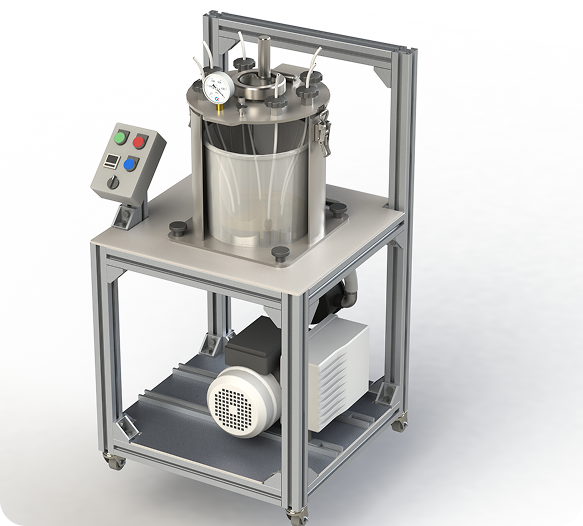 Установка дегазации предназначена для удаления воздуха из эпоксидных смол, силиконов и пластиков, используемых при изготовлении композитных деталей БПЛА.