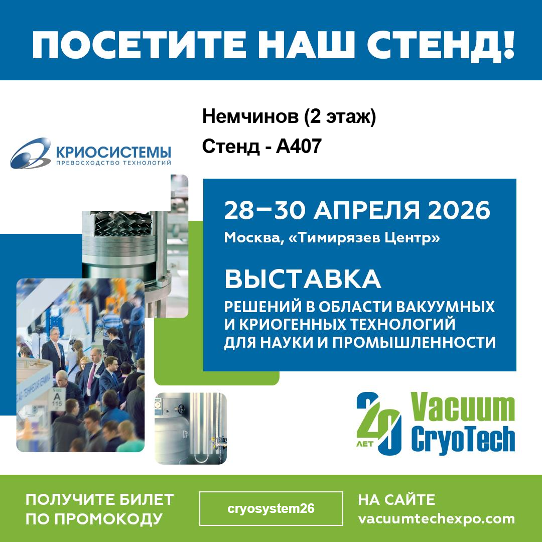 Мы приглашаем к сотрудничеству вас и надеемся, что вы выберете нашу команду своим надёжным поставщиком вакуумного и криогенного оборудования.